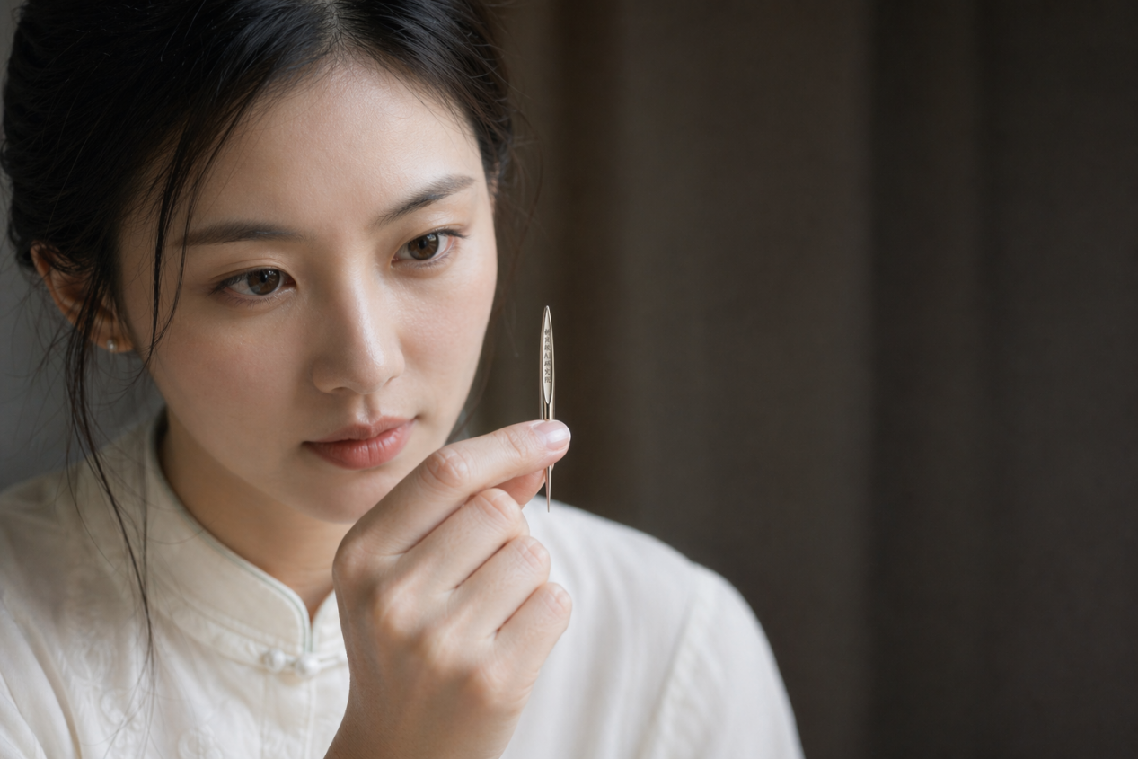 对于Images 2.0的理解能力和细节掌控力,新京报AI研究院输入提示词:“请帮我生成一张图片,图片是一个拿着针的女性。如果我放大该图片,能够在金属绣花针针尖极小的平面上看到雕刻的楷书'新京报AI研究院',金属质感真实,字体精细无变形。”